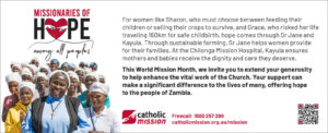 The Sawtell Parish have postponed collections this weekend, instead for the following weekend, where we will have Lew Wallace from Catholic Mission talk to us about this important work.  It’s lovely as it will coincide with the conclusion of the Jubilee Pilgrim Walk on Saturday evening.